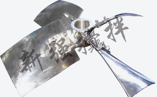 外緣的圓周速度一般為5~15m/s。旋槳式攪拌器主要造成軸 向液流,產生較大的循環量,適用于攪拌低粘度 (<2Pa·s)液 體、乳濁液及固體微粒含量低于10%的懸浮液。攪拌器的轉軸 也可水平或斜向插入槽內,此時液流的循環回路不對稱,可增加湍動,防止液面凹陷。