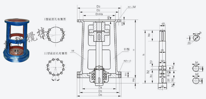 注:圖示所注“h”僅與本樣本BLD、LC-Ⅱ、DC-Ⅱ系列減速機相配,如選用其他型號或其他廠家減速機,“h”需另行計算。 |