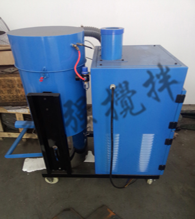 真空加料機(jī)中裝有壓縮空氣反吹裝置,每次放料時(shí),壓縮空氣脈沖反吹過濾器,把吸附于過濾器 表面的粉末打落下來,以保證吸料能正常運(yùn)行。