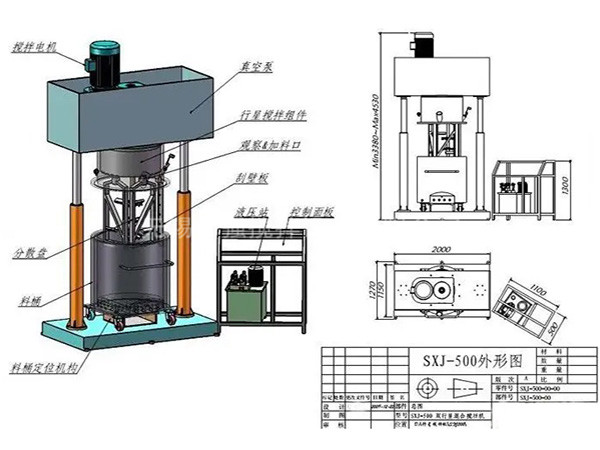 雙行星混合攪拌機是一種對多種液體、粉體進行混合攪拌、溶解、分散、均質(zhì)的攪拌設(shè)備,分為減速電機、封蓋、行星架,高速、低速、活動刮板三軸,刮壁器、料桶、雙柱液壓升降系統(tǒng)、真空系統(tǒng)以及機架等構(gòu)成。雙行星混合攪拌機能在真空下工作,可不斷的排出水分和其他的揮發(fā)物,因此,可作為脫氣釜使用。料桶可根據(jù)需要采用油、水循環(huán)加熱或冷卻;也可使用蒸汽加熱。加熱溫度通過控制面板上的溫度控制儀顯示。行星分散混合機(行星攪拌機)廣泛應(yīng)用于高粘度電池、涂料、有機硅膠、油墨、染料、粘膠劑等。